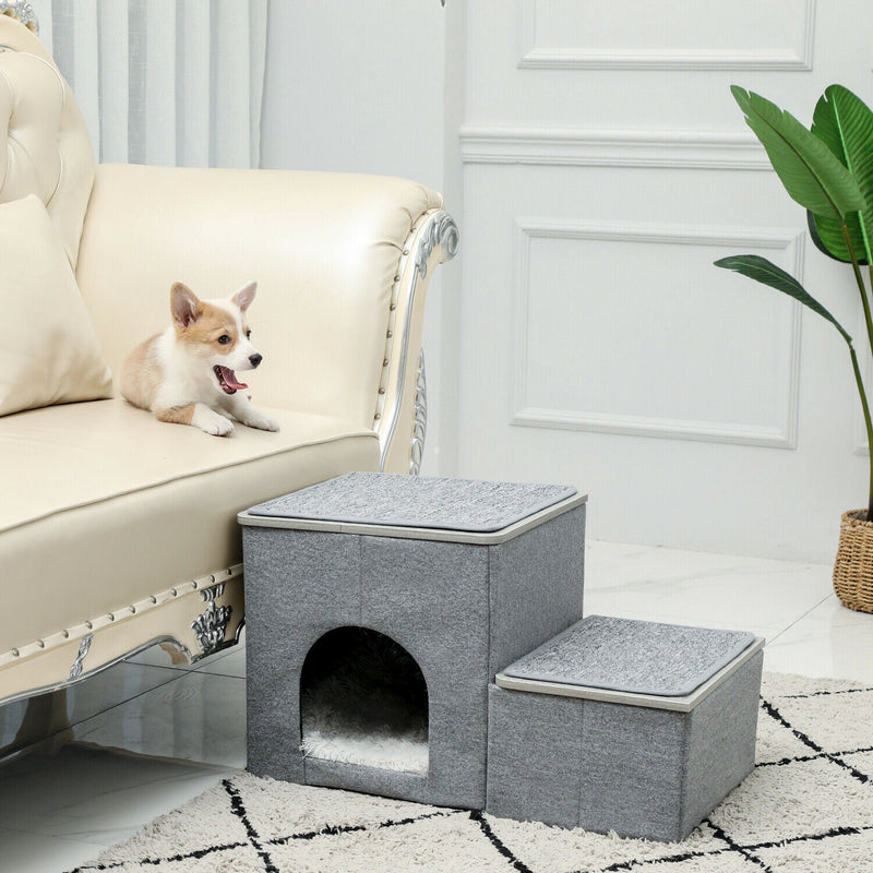 1. TWO-IN-ONE DESIGN: Thanks to our designer’s creative idea, this PAWZ Road Pet stairs not only play as a ladder but also offer your pets a cozy and warm house. A big condo with a soft plush cushion under the second stair to allow your pets to curl up or have a private sleep. While a storage box is designed under the first stair which can place toys or foods. This pet ladder is super perfect choice if you own both a dog and a cat.