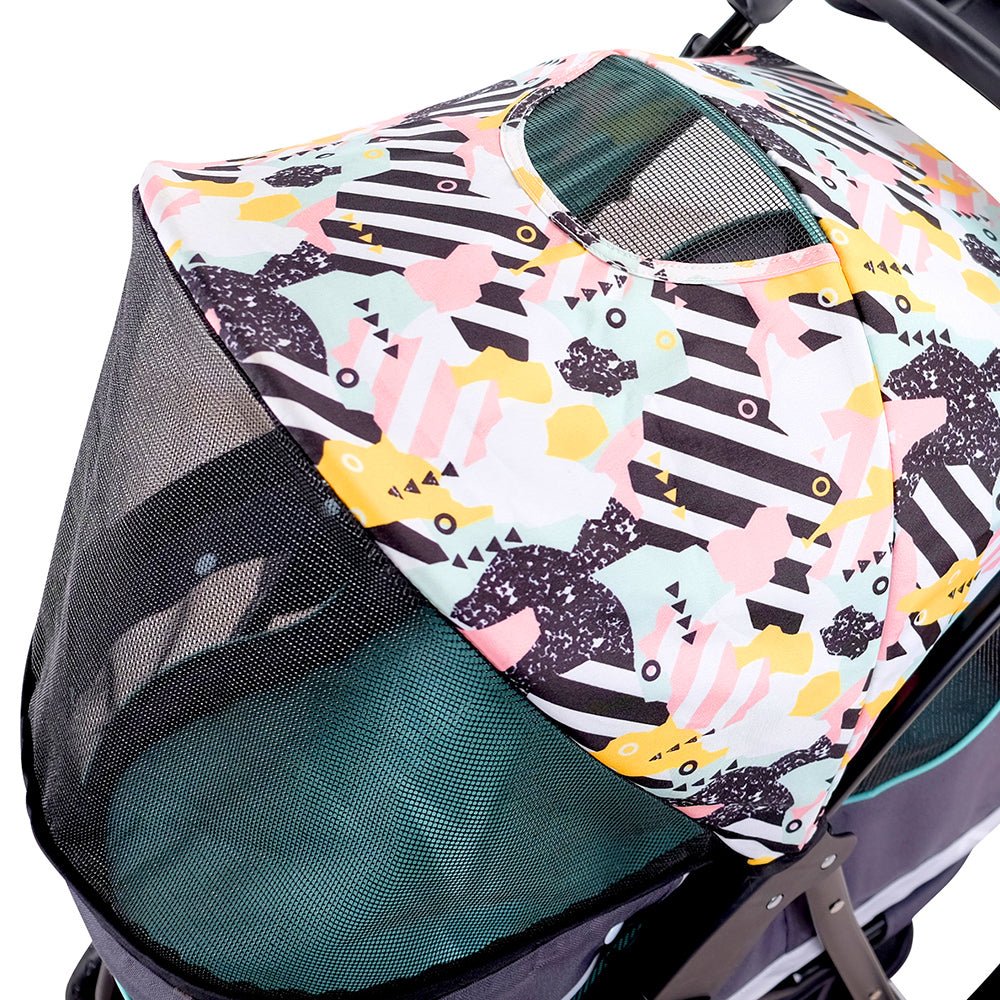 - Modern gestalteter Haustier-Buggy mit großer Kabine und verstellbarem Verdeck mit Netzfenstern