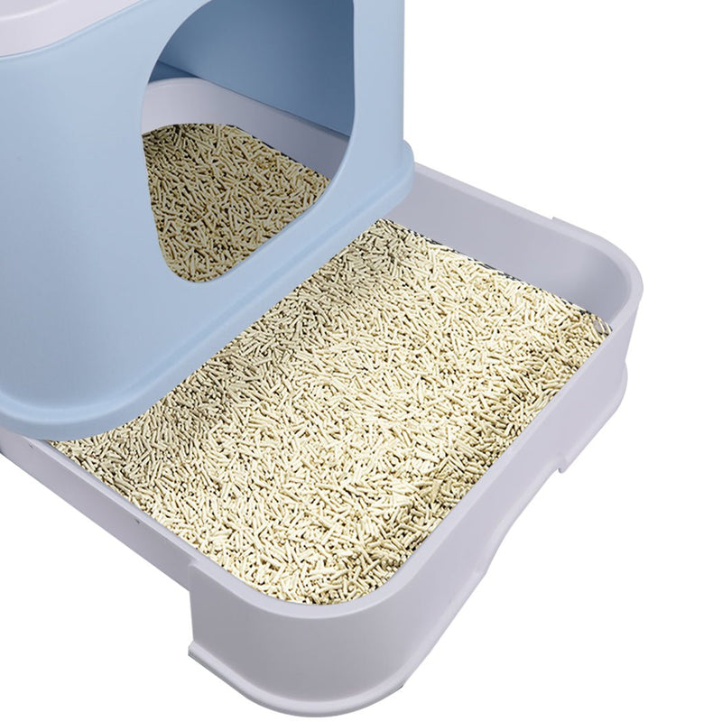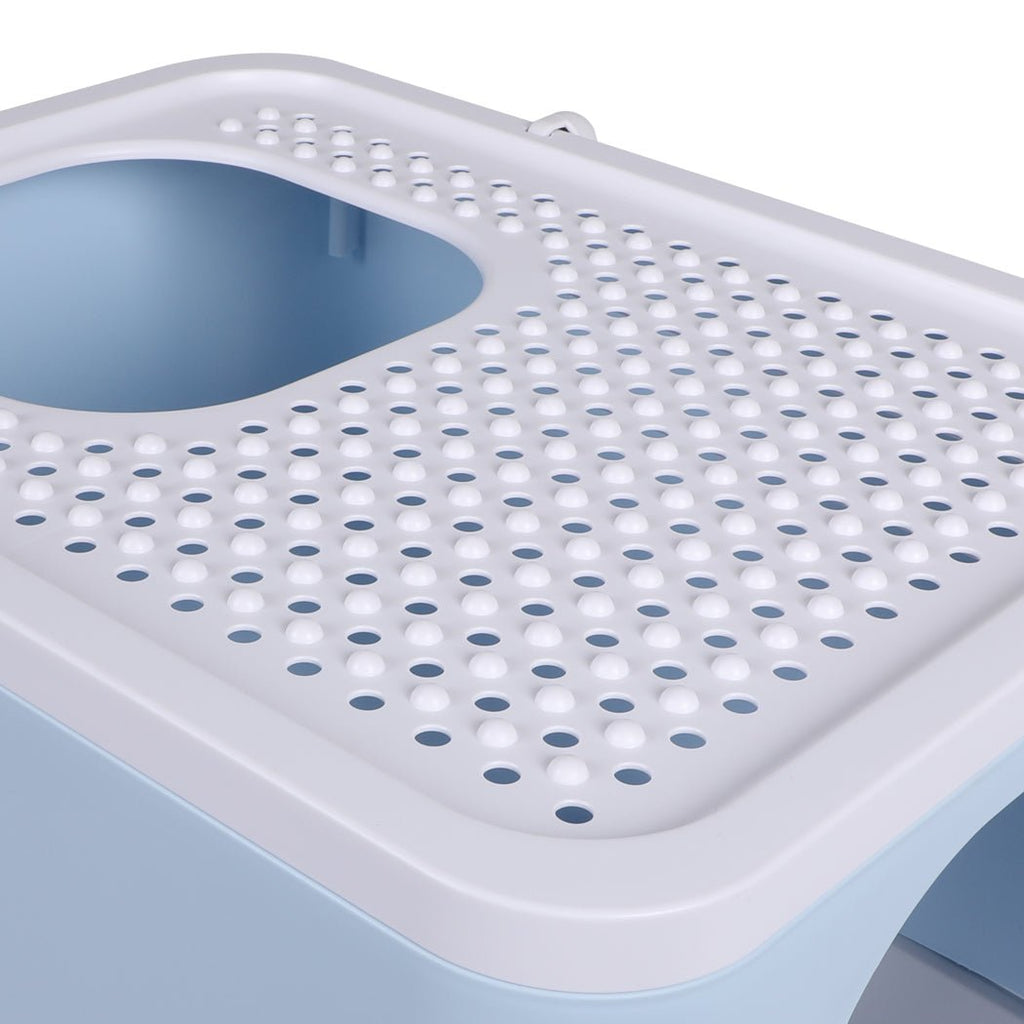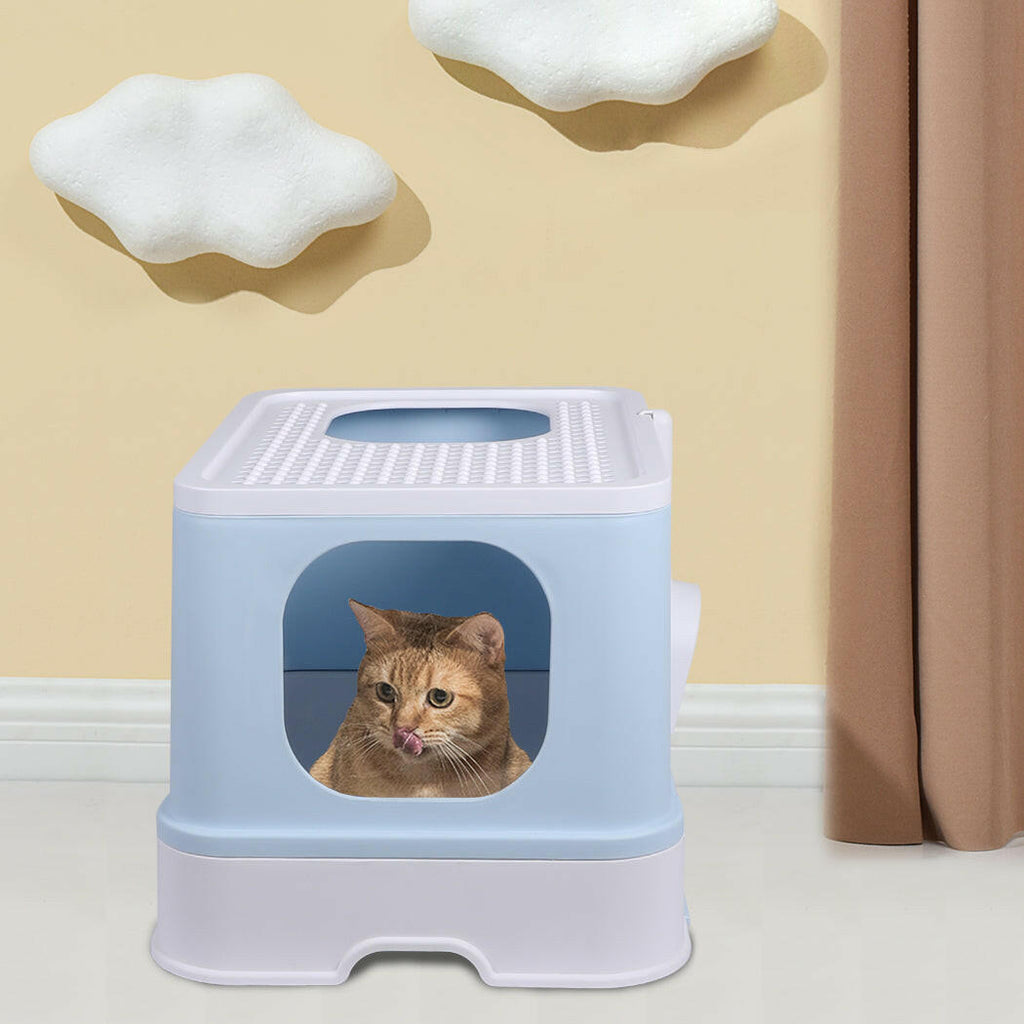 Komplett geschlossenes Katzentoilettenbecken in Blau