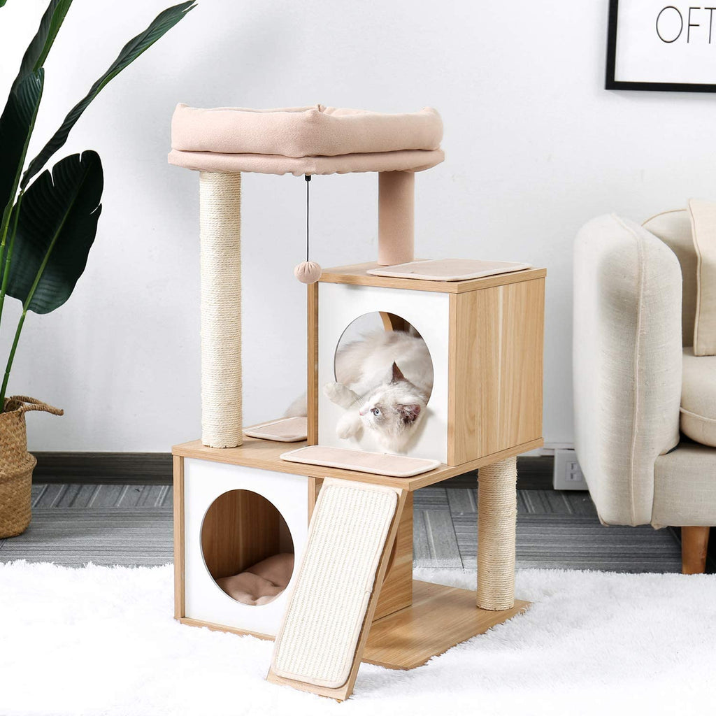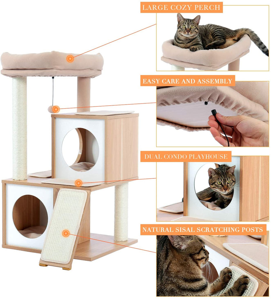 Luxury Cat Tree With Double Condo - Beige