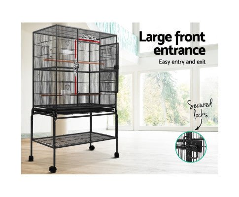 Our High quality wrought iron birdcage features perches, feeders and ample room for your bird to spread their wings. The bird cage is built to last and is ideal for any bird.