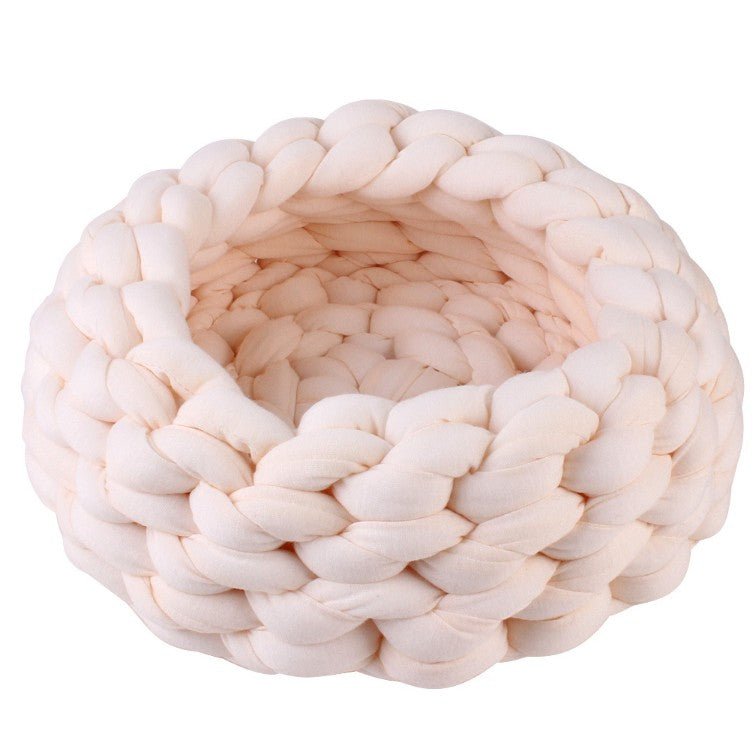 Chunky Cotton Braided Knit Pet Bed in Ivory