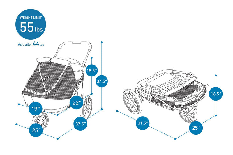 - Bicycle Dog Trailer Mode: Effortlessly transition the Minika into a dog bicycle trailer with the optional bike tow bar, ideal for pet owners who enjoy long bike rides and want their pets to share in the outdoor fun.