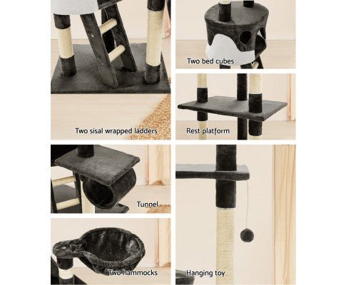 Designed to be a condo that exudes a sense of security, the 2.6m Scratch Tree features cubby holes and platforms of various heights to allow your pet to jump, hop, skip, scratch, rest and nap to its heart's content. And as for its claws maintenance, the fully wrapped 7cm thick sisal covered poles are ideal for your pet to practice her daily regime of keeping its claws in good shape. Besides, it also helps to keep your pet off your expensive furniture too.