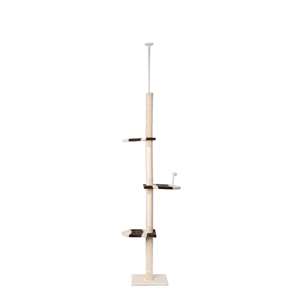 Watch your cat jump onto your floor to ceiling cat tree. Your cat can leap from platform to platform. Add some toys to entertain your playful cat.