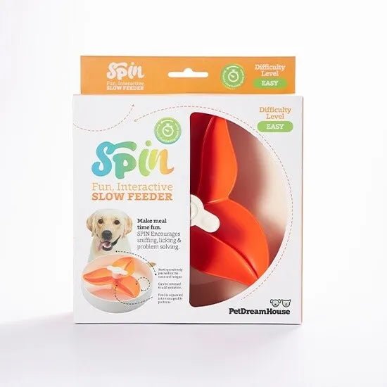 The Pet Dreamhouse SPIN Bougainvillea Feeder is a slow-feeding & interactive puzzle game for dogs featuring a spinning flower-shaped top in the centre that hides kibble and treats. The spinner can be removed and flipped over to reveal extra compartments in the petals.