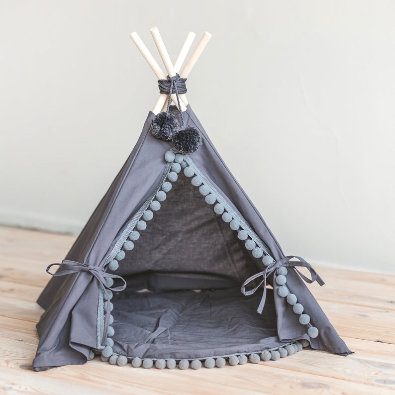 Pom Pom Pet Teepee With Mat in Grey