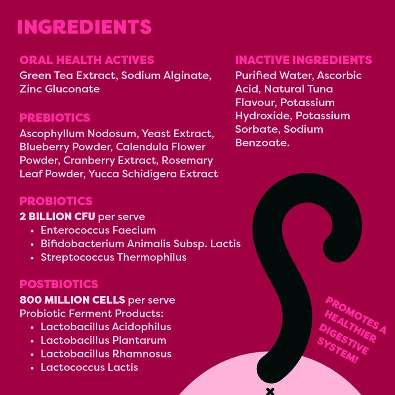 Tribiotic Power: Combines prebiotics, probiotics and postbiotics for full-spectrum gut + dental support