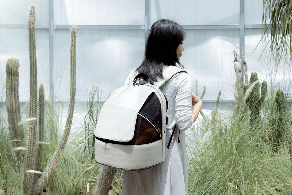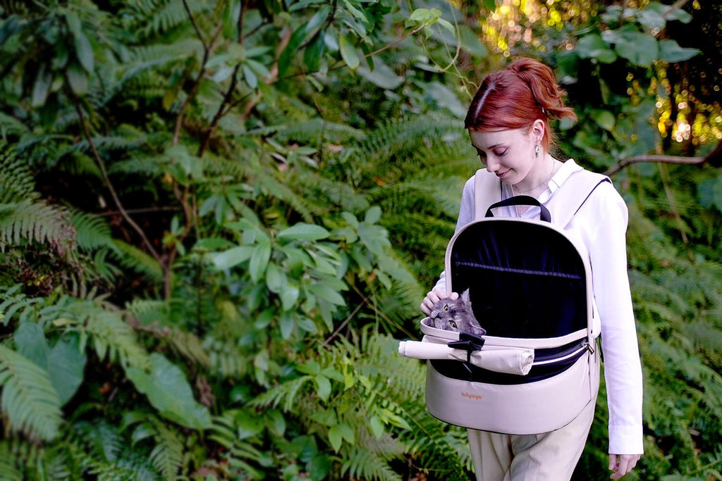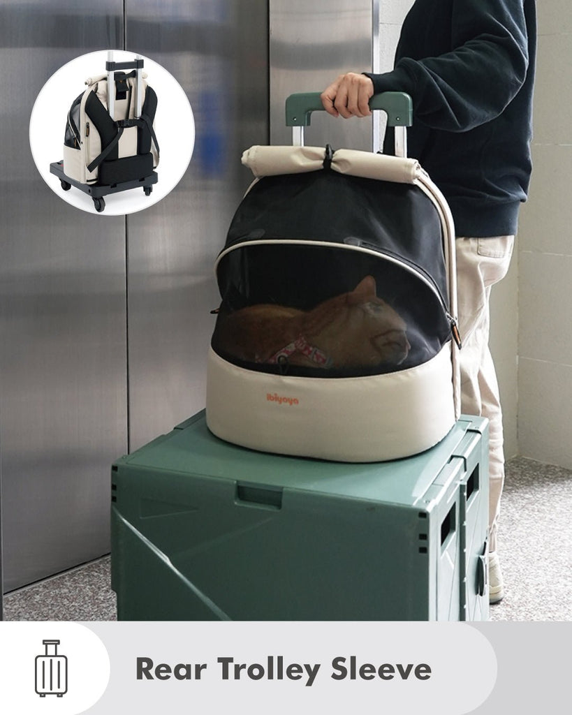 Ibiyaya Panorama Zipper-Free Small Pet Travel Carrier, Cat-Dog Chest Carrier, Airline-Approved Pet Backpack with Optional Wheels – Buttermilk